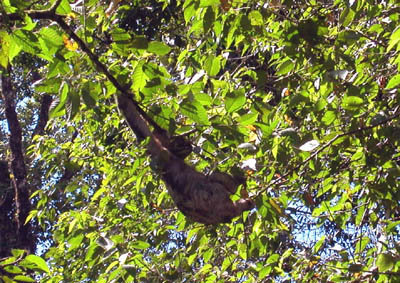 | A very slow-moving, hard-to-photograph, SLOTH hangs out in a tree. |