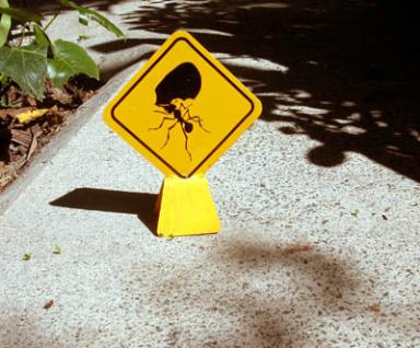 | Ant Crossing sign... To warn pedestrisns not to step on leaf-cutter ants which can be seen (if you look closely) crossing the sidewalk. |