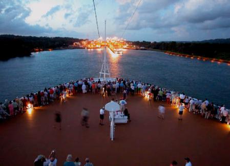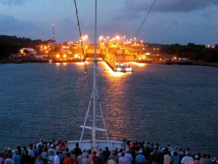 Lots of lights - locks operate 24 / 7, but the cruise ships pay extra to go thru in daylight.