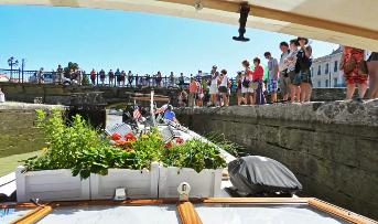 The hotel barge "ANJODI" filling the lock in Carcassonne.