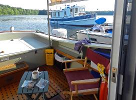 "picnic boat". She's built from cold-molded wood-epoxy and