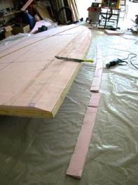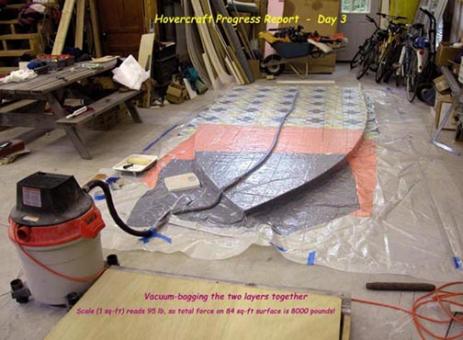 In our first experience with vacuum bagging, we successfully glue the two deck halves together. Using a bathroom scale to check the vacuum, we were amazed to see it reading 120 Lbs. with nothing on it but a sheet of plastic!