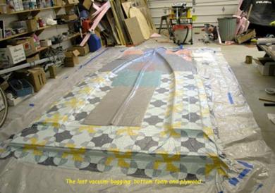 The last vacuum bagging -- bottom foam and plywood.