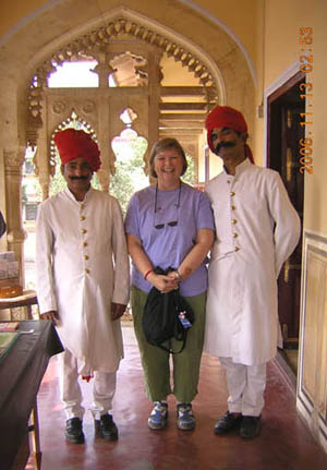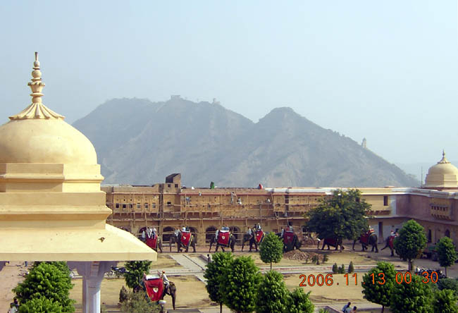 | This is either one heck of a movie set - or the real thing! Nancy says these were real elephant rides inside the Royal Palace at Jaipur. |