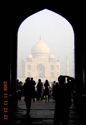 | Taj Mahal entrance - murky skies on this day in Agra |