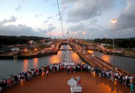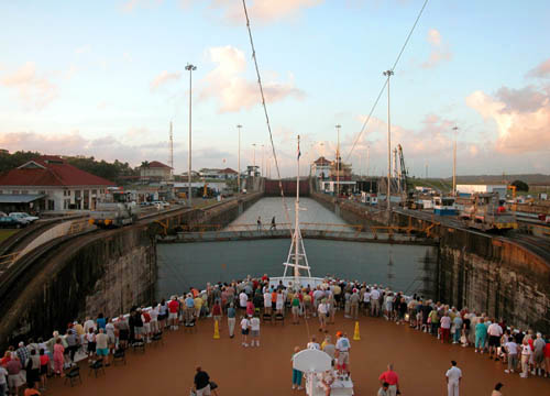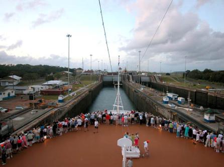 on the bow) we can already see the next lock and Gatun Lake in the distance.