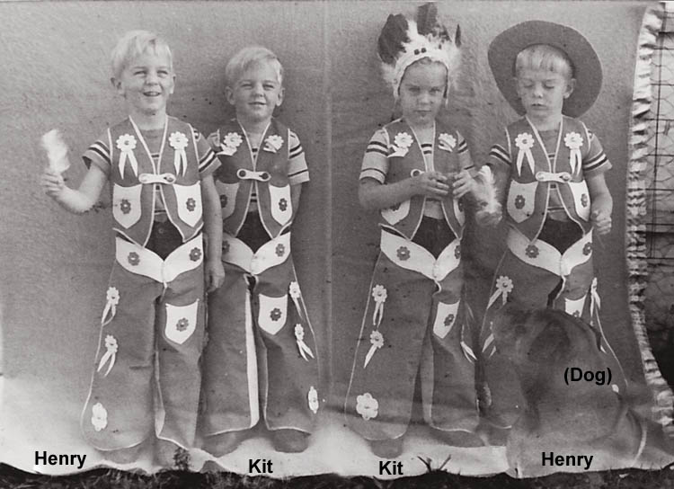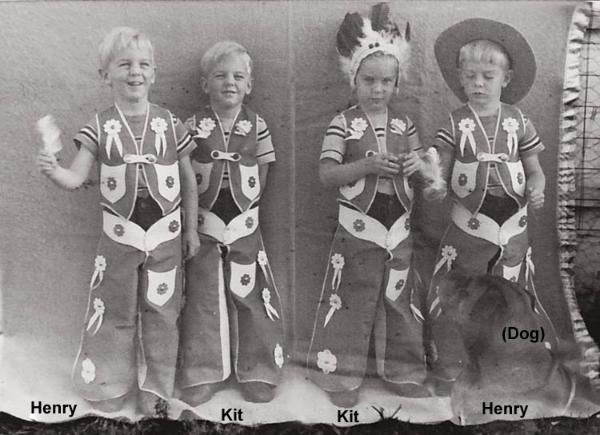 Another, oh so clever shot of us in cowboy and Indian outfits. Our dog "Tory" seems to have