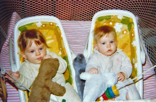 dressed us in different colors so they could tell us apart - Henry in blue, Kit in red. Do you think it