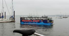 Amphibious Duck heading out into Portland harbor.