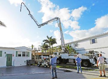 Looking up! The concrete boom truck positioning for the Big Pour.