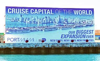Sign (on container boxes) along Goverment Cut in Miami.