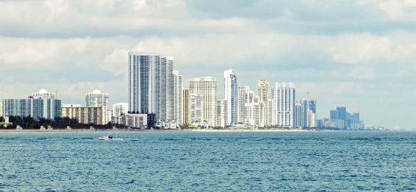 North Miami Beach, looking north from Baker's Haulover Inlet - about 10 miles north of Miami's Government Cut.