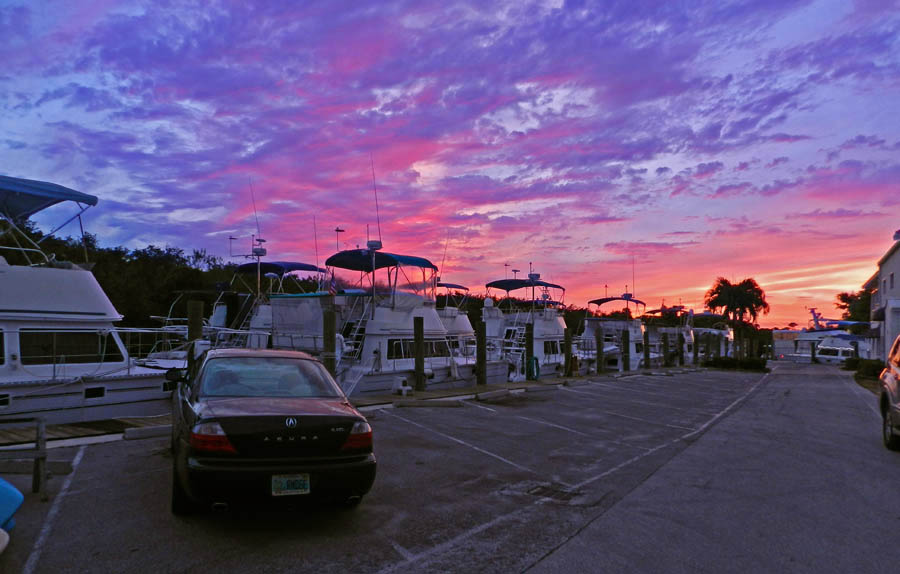 Sunset view (telephoto) from our slip at Marathon Marina.
