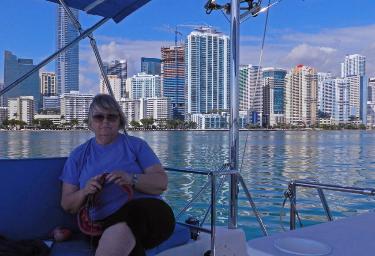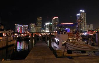Colorful Miami skyline behind our slip at MiaMarina Bayside.