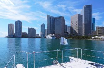 Miami skyline at the entrance to beautiful Biscayne Bay.