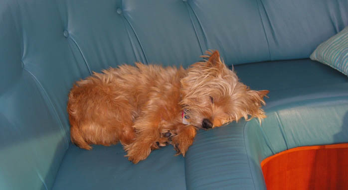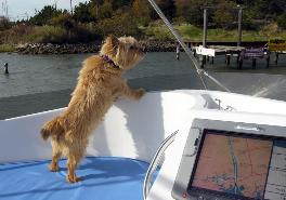 flags are to discourage sea gulls which like to perch on Sno' Dog when she's at her mooring.)