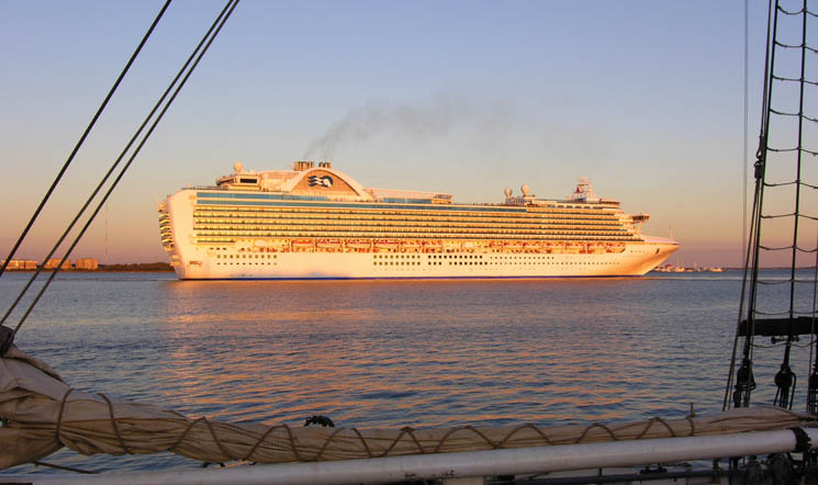 The HUGE Crown Princess making a sunset departure from Charleston.
