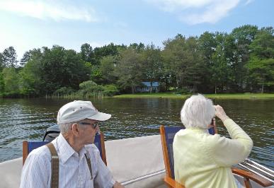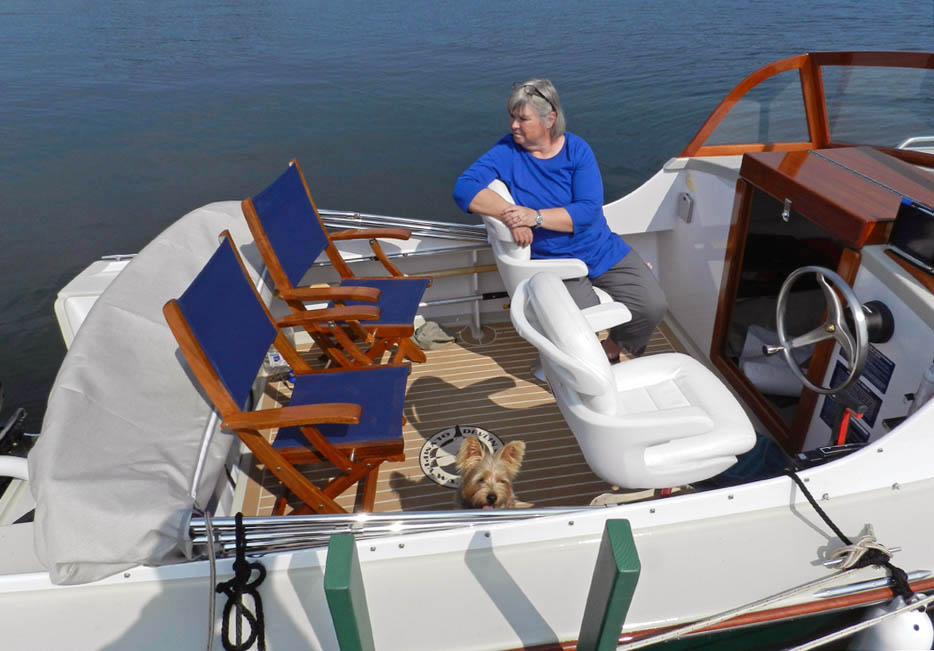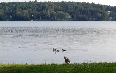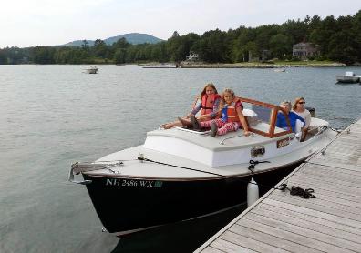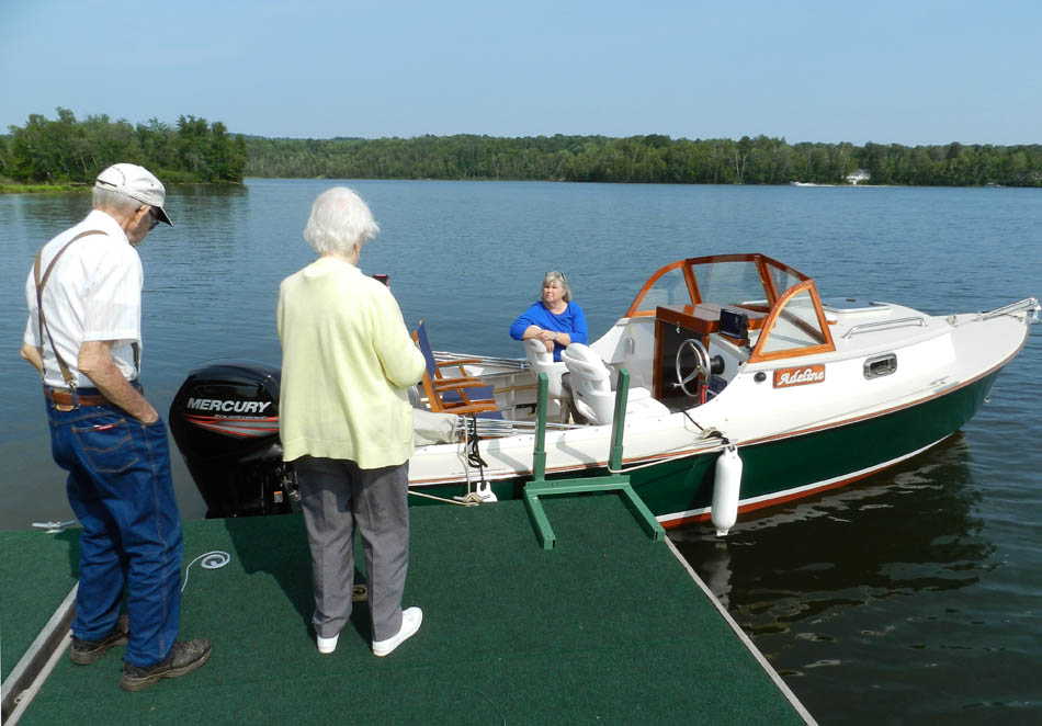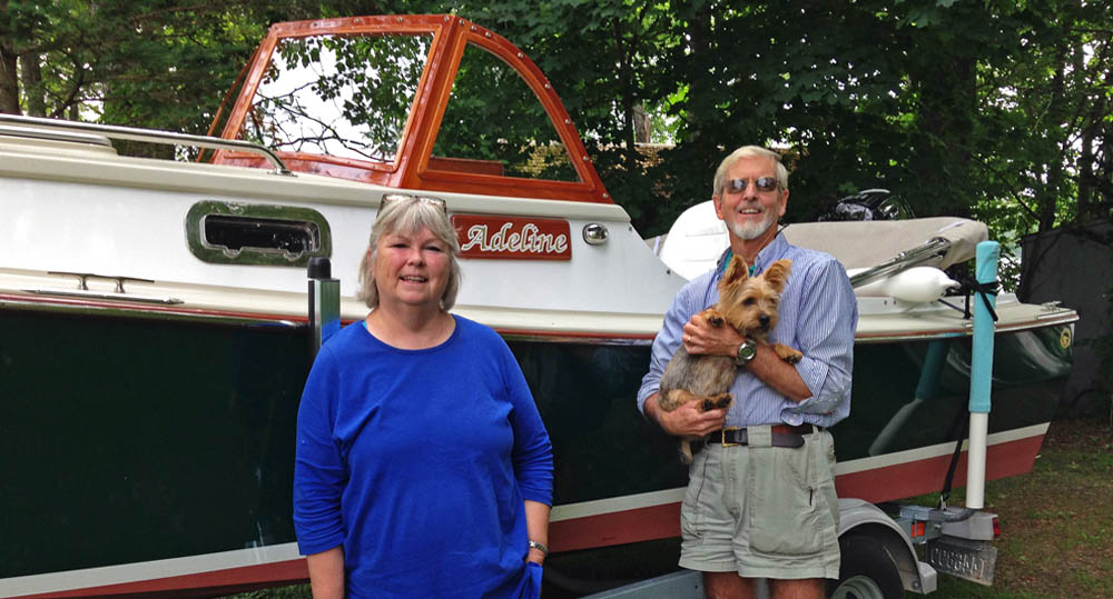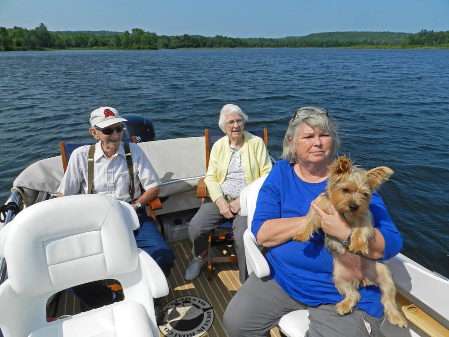 Adeline-the-boat & Adeline-the-dog, along with Nancy & Henry - at McKusick's lakeside camp in Dexter, ME