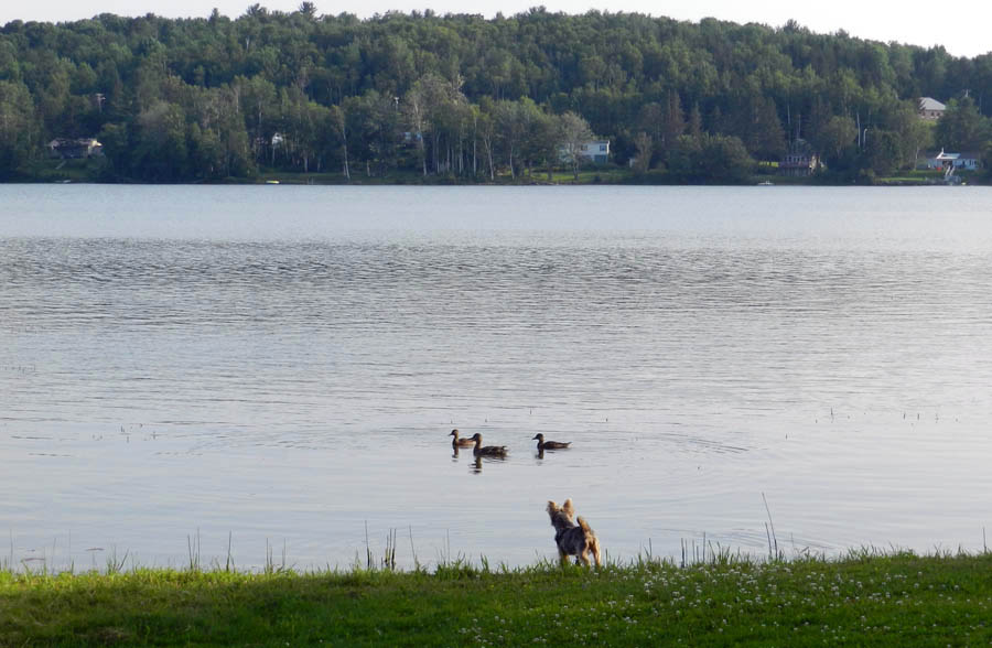Addie checking out the ducks in front of the McKusick's camp.