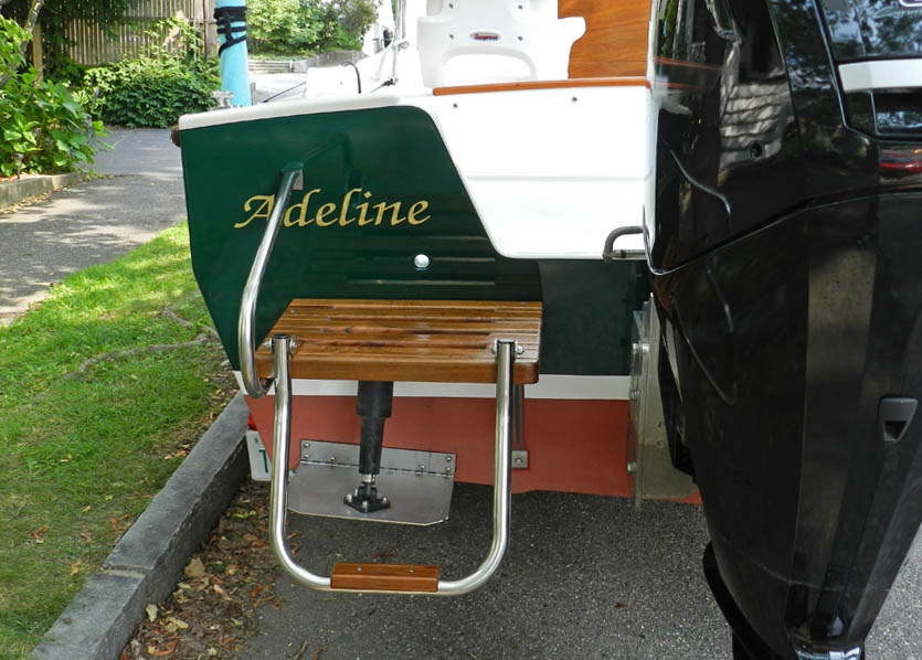 swim platform (with folding step) on the stern of Adeline.